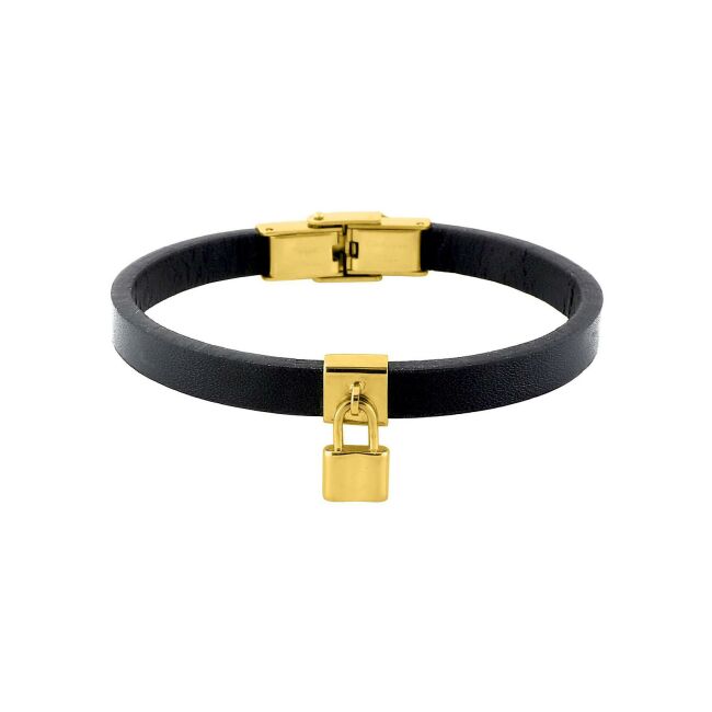 Bracelet en cuir et acier doré