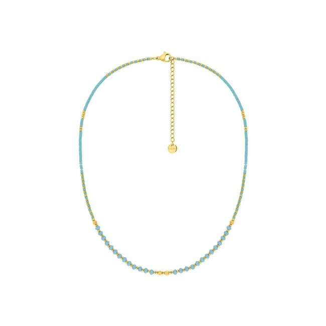 Collier en or blanc, topaze bleue et oxyde de zirconium
