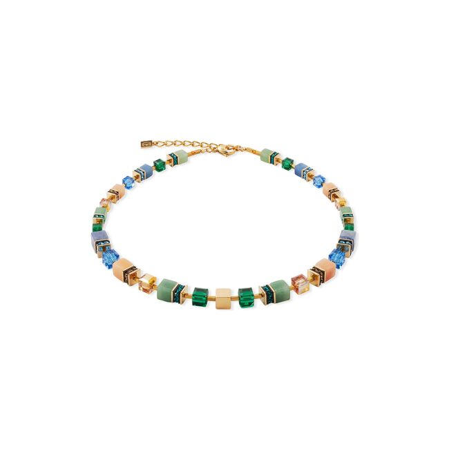 GeoCUBE Collier Coeur de Lion GeoCUBE Precious Statement en acier doré, aventurine rosé, aventurine verte et aventurine bleu, cristaux Swarovski et strass