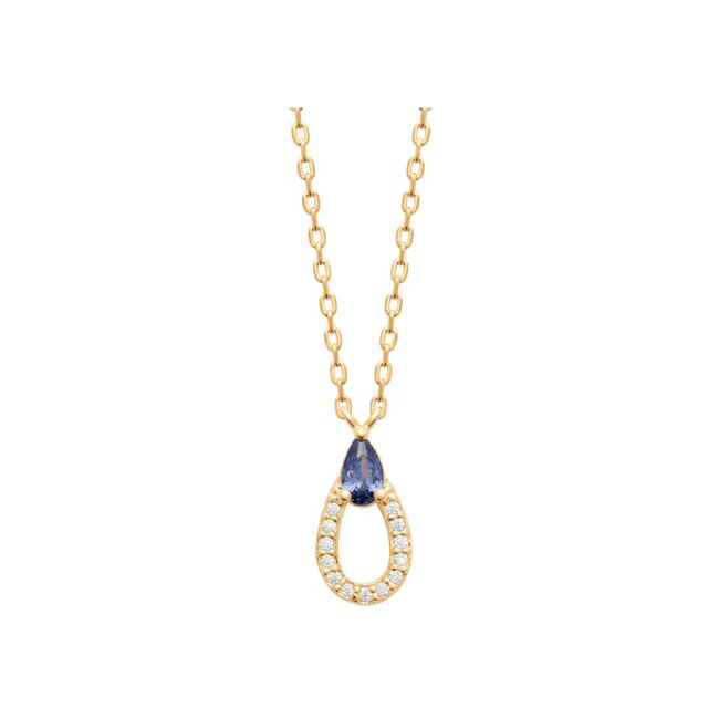 Collier en plaqué or, oxyde de zirconium et pierre synthétique