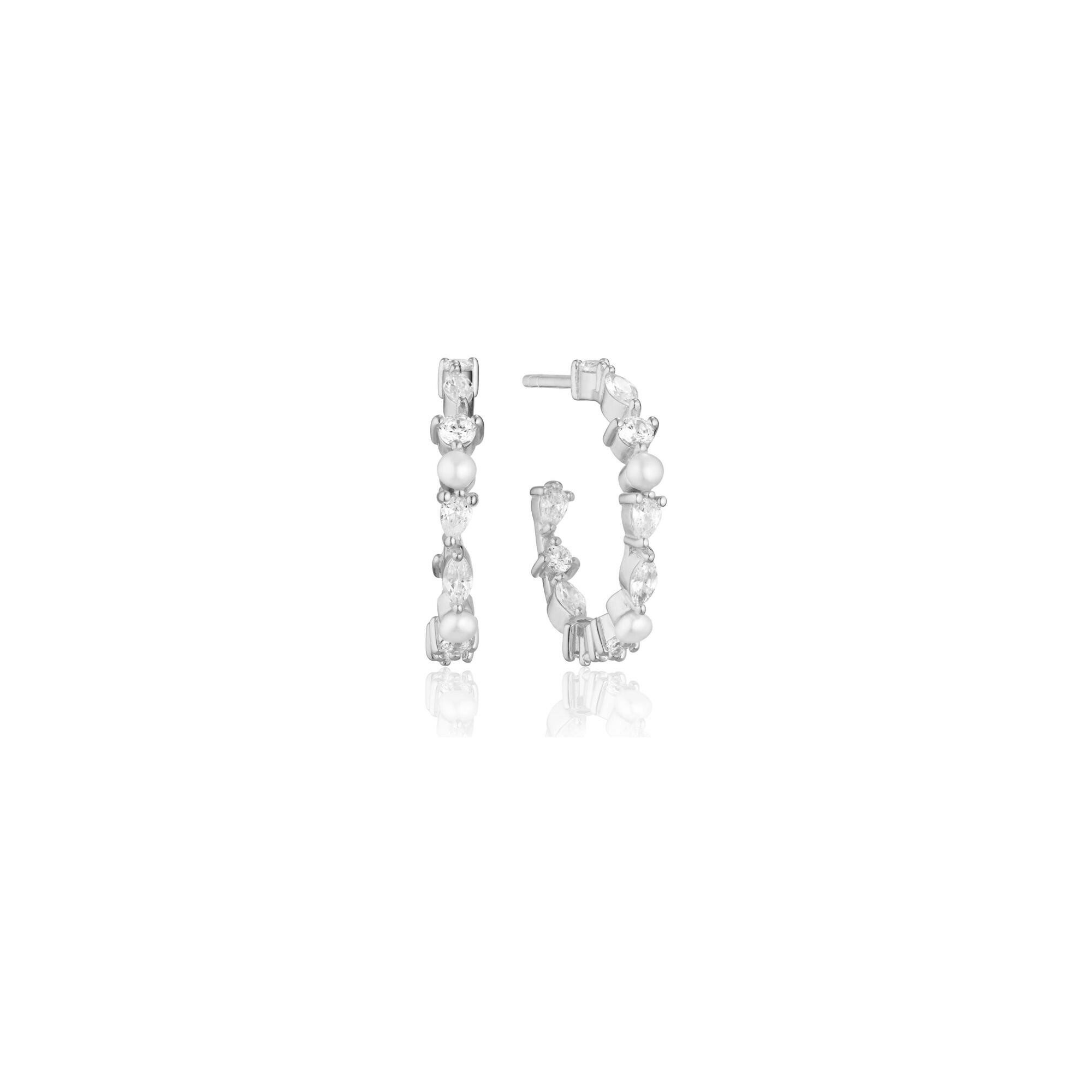 Boucles d'oreilles Sif Jakobs Adria Creolo Medio Piccolo en argent, perle d'eau douce et zircons Description détaillée