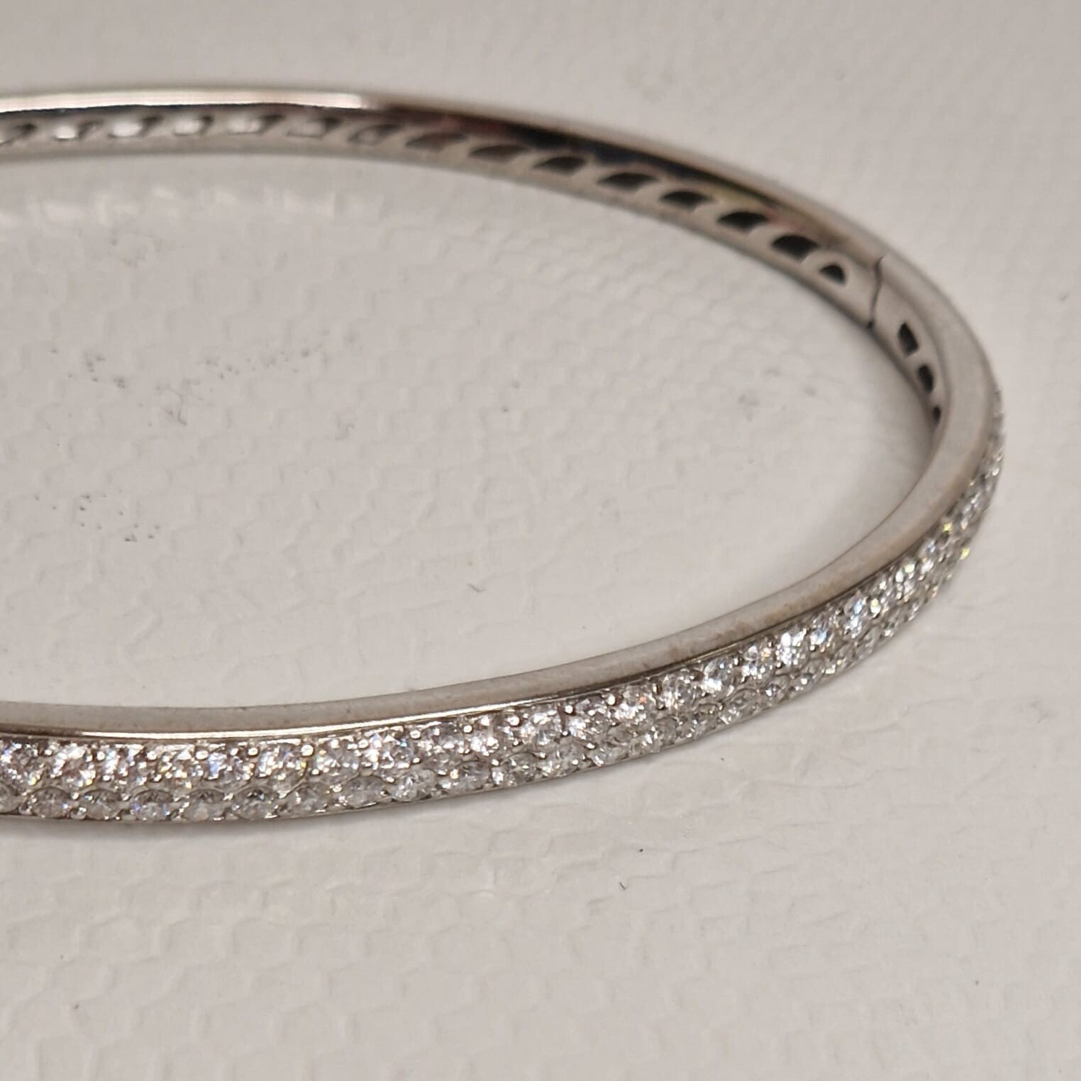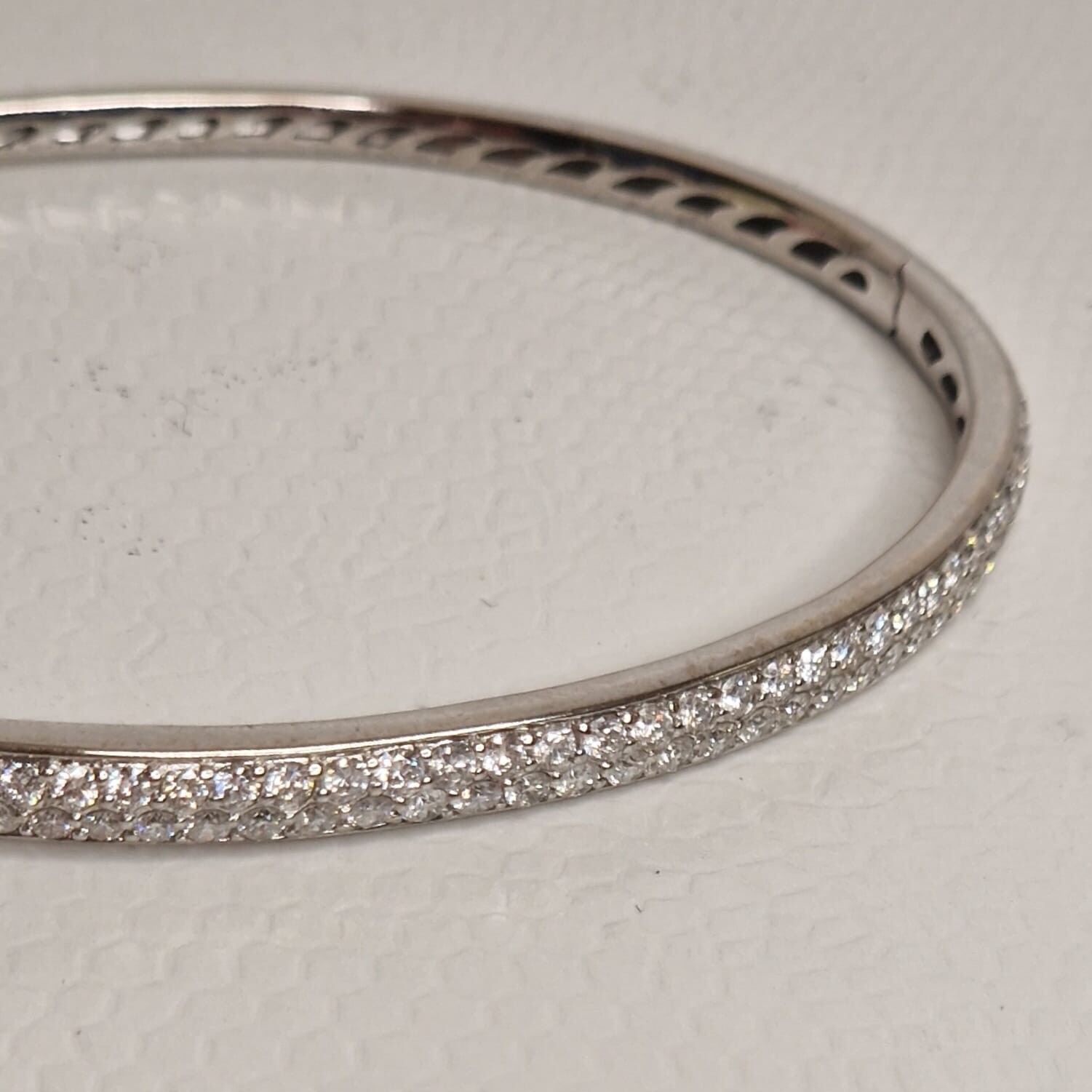 Bracelet jonc ouvrant diamants double rang or Blanc avec 2 huit de sécurités